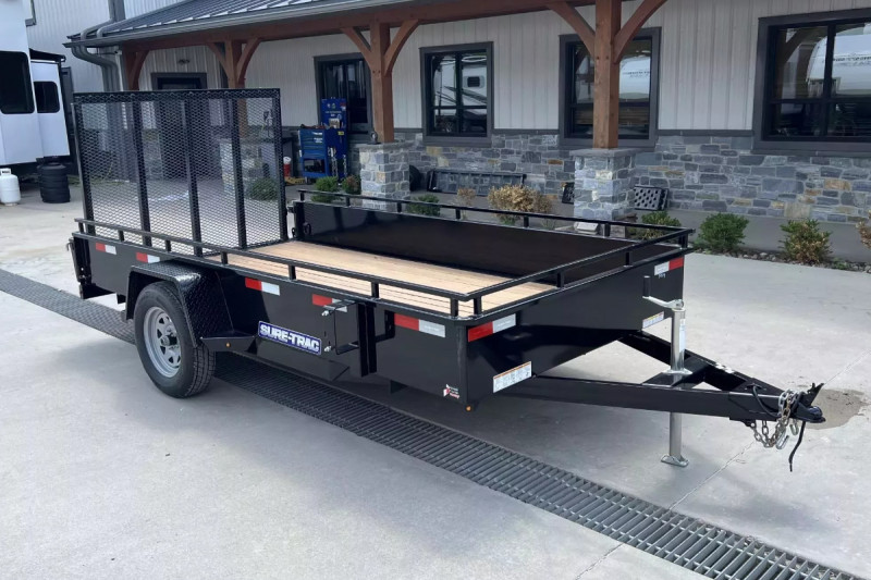 The 12′ Sure-Trac Landscape Trailer with Gate Ramp (Single Axle) - a reliable and easy-to-use hauling solution for landscaping projects, yard clean-ups, hauling equipment, furniture moves, and more. Built tough and designed for everyday work, this trailer offers excellent stability and strength while remaining lightweight and maneuverable behind most trucks, SUVs, and utility vehicles.